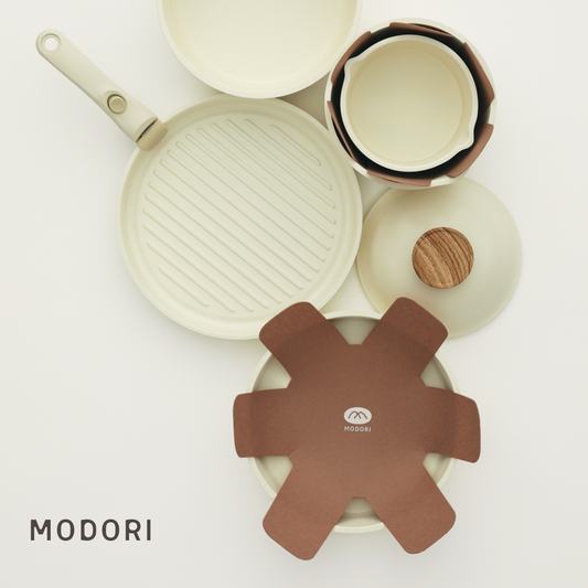 說到Modori,你也會想到他們超有人氣的純白鍋具組吧?今年夏天,還全新推出了磨石鍋具組,靈感來自韓語單詞「Arong」,意指花花綠綠的顏色或是一點一點的花紋,為我們的經典3件鍋具組系列注入了新的生命,這次新產品還一共有3款令人愉悅的顏色可選。 磨石鍋具組旨在滿足客人多樣化的烹飪需求,為廚房增添一絲優雅和便利。